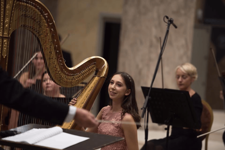 Her determination from a very young age leads her to meet audiences around the world. Among the most important venues is the debut at Carnegie Hall in New York with harp and piano when she was only 13 years old, as well as the invitation to play a harp recital at the World Harp Congress in Hong Kong and a piano and harp recital at the Villa Medici in Milan.